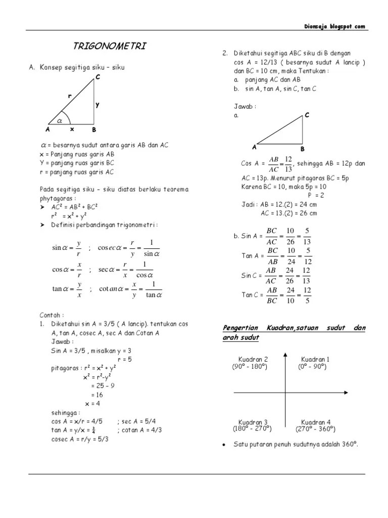 Ada enam perbandingan yang menjadi dasar dari trigonometri yaitu sinus sin cosinus cos tangen tan sekan sec cosekan csc dan cotangen cot soal sin cos tan kelas 10. Kumpulan rumus trigonometri lengkap pdf;